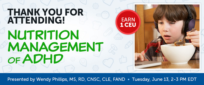 This webinar was presented on Tuesday, June 13, 2017, from 2-3 pm EDT by Wendy Phillips, MS, RD, CNSC, CLE, FAND