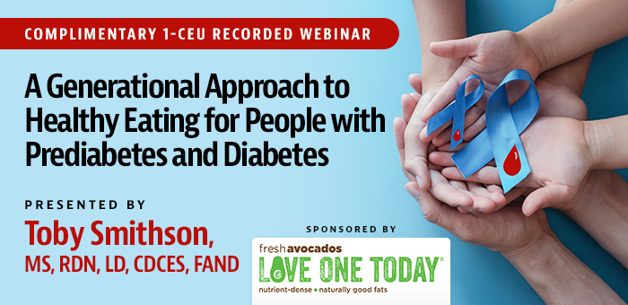 Join Toby Smithson, MS, RDN, LD, CDCES, FAND, for a webinar focused on generational characteristics, the impact of these differences in patient care, and best practices for diet strategies in the pursuit of managing diabetes or prediabetes.