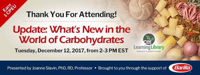 This webinar was presented by Joanne Slavin, PhD, RD, on Tuesday, December 12, 2017, from 2-3 p.m. ET.