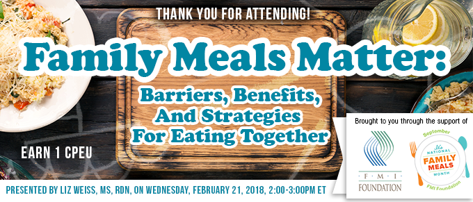 Webinar: Family Meals Matter: Barriers, Benefits, and Strategies for Eating Together