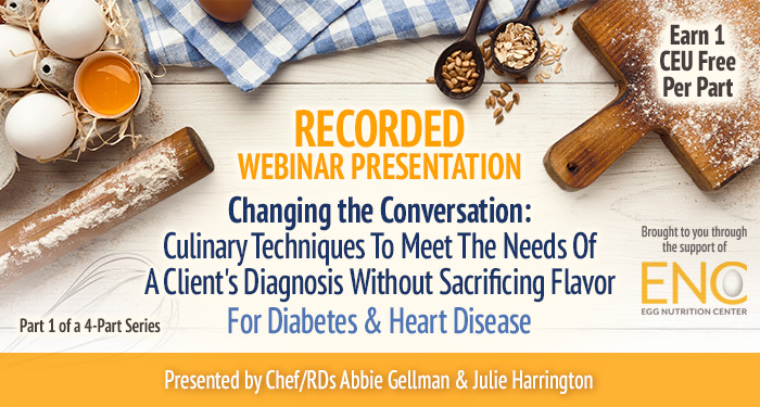 Recorded Webinar: Changing the Conversation: Culinary Techniques to Meet the Needs of a Client's Diagnosis Without Sacrificing Flavor for Diabetes & Heart Disease